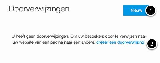 Klik op Nieuw (1) of ' creƫer een doorverwijzing' (2).