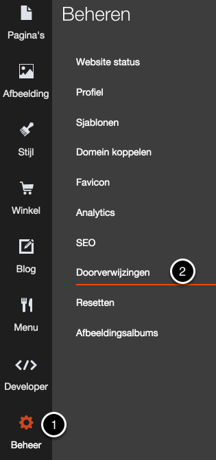 Klik op Beheer(1) en daarna op Doorverwijzingen (2).