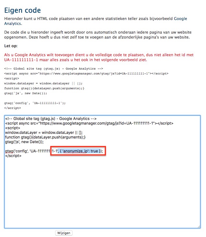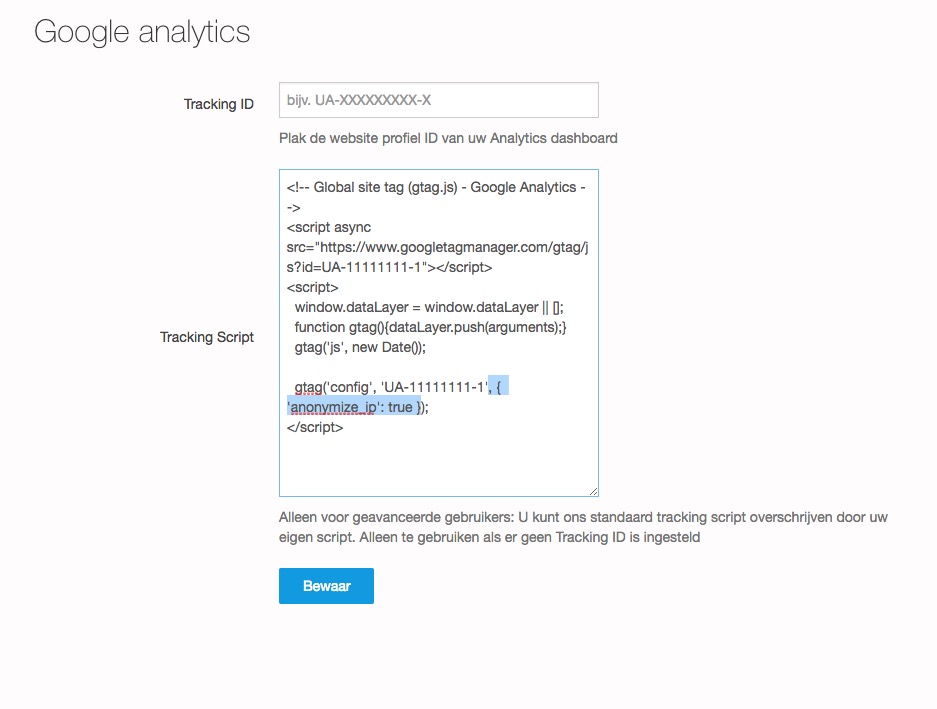 - Nu is volgende de Autoriteit Persoonsgegevens uw Google Analytics goed ingesteld en heeft u geen toestemming nodig voor het plaatsen van de cookies. U dient echter wel erop te wijzen dat u deze cookies plaatst in uw Privacy beleid.