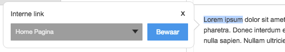 Selecteer Intern en kies vervolgens de betreffende pagina waar de tekst naar moet doorverwijzen. Klik op bewaar.