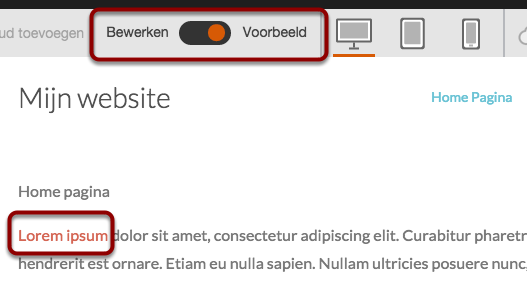 Kies voor voorbeeld en test of de knop naar de juiste pagina of website verwijst.