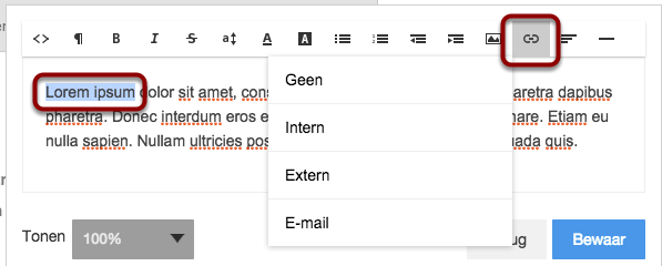 Selecteer de tekst waar u de link aan wilt koppelen en klik op het link icoon.