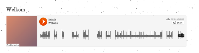 Wanneer u muziek of audio bestanden op uw website wilt plaatsen kan dit via de SoundCloud Widget. Via https://soundcloud.com/ kan u een gratis account aanmaken waar u een audio bestand of muziek kan uploaden.