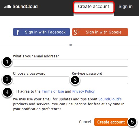 Ga naar https://soundcloud.com/ klik op 'Create Account'.