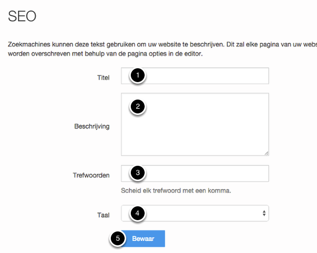 3. Voeg enkele trefwoorden toe die de website goed omschrijven. Op deze manier kan de website in de zoekresultaten van google getoond worden bij mensen die zoeken op soortgelijke trefwoorden.