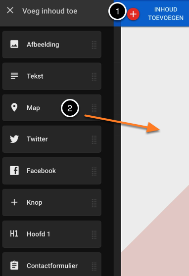 - Kies in de zijbalk de content die u aan de website wilt toevoegen.