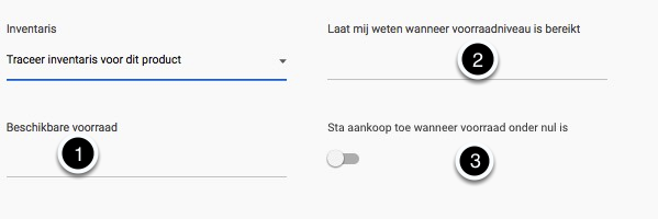 Klik op het dropdown pijltje en kies: Traceer inventaris voor dit product.