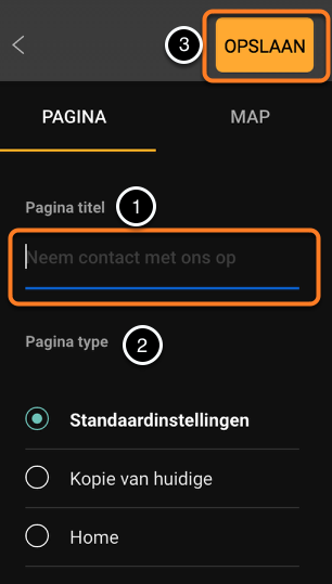 1. Voeg een nieuw pagina toe: klik op pagina en voeg een titel toe. Kies bij Locatie voor de map van uw keuze. Sla de nieuwe pagina op.