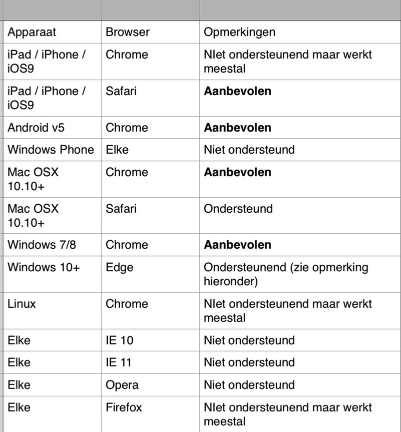 Niet ondersteunend betekent dat we de betreffende browser niet testen en ook geen hulp kunnen bieden bij problemen. Overigens kan het zijn dan de webbuilder prima werkt in de betreffende browser.