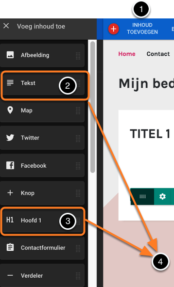 - Kies voor 'Tekst' of 'Hoofd 1' (3)