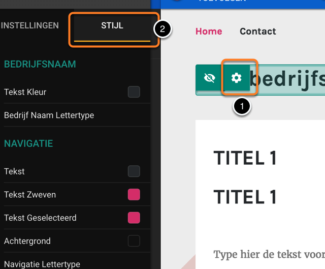 Content stijlen zijn opties waarin u een specifiek deel van u website kan aanpassen in kleur of lettertype.
