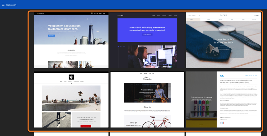 Een sjabloon (layout) kiezen kan direct bij het aanmelden voor de webbuilder of via Sjabloon pikker.