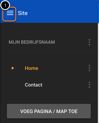 - Klik op het Site Menu icoon links bovenaan het scherm