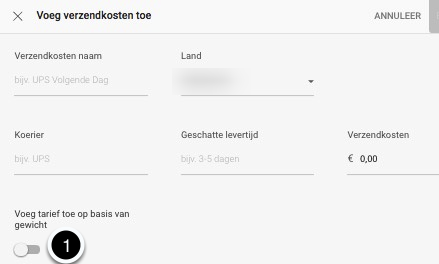 Indien u wilt dat de prijs op basis van het gewicht gaat zet dan de knop aan (1).