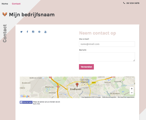 Informatie die is toegevoegd aan het website Profiel worden over de gehele website gebruikt. Informatie zoals de bedrijfsnaam komt in de header van de website te staan. Andere informatie zoals een telefoonnummer of adresgegevens kunnen in de footer getoond worden. Let op, dit is deels afhankelijk van de door u gekozen layout.