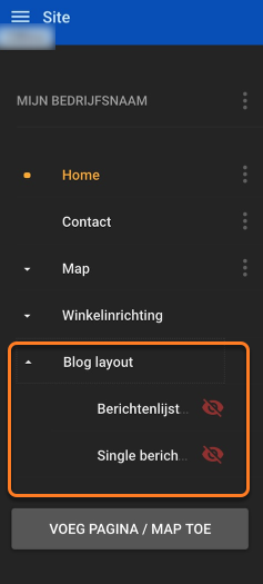 Wanneer u voor de eerste keer op 'blog' klikt in het hoofdmenu, worden er twee blog layoutpagina's aan uw website toegevoegd. Deze twee pagina's zijn hoofdpagina's die laten zien hoe uw berichtenlijst en individuele berichten eruit komen te zien. Iedere wijziging die u aan deze layout doet zal zichtbaar zijn op pagina's die van deze layout gebruik maken.