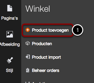 Om een product aan uw webshop toe te voegen klikt u op Product toevoegen(1).