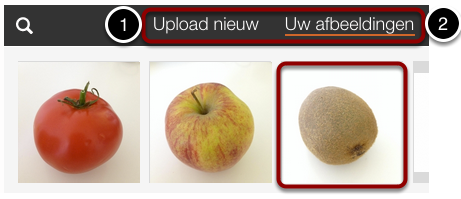 Vervolgens kiest u Upload nieuw (1) of een Bestaande afbeelding uit Uw afbeeldingen (2).