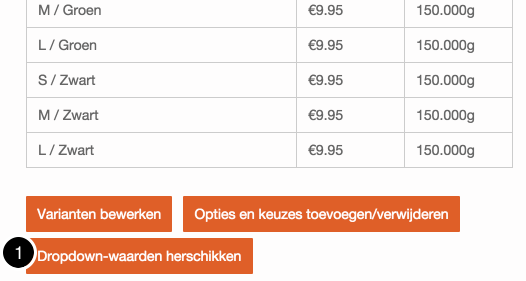 Bij het bewerken van de varianten ziet u de volgende mogelijkheden: